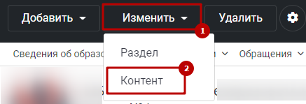 Шаг 1. На панели администрирования нажать Изменить > Контент.