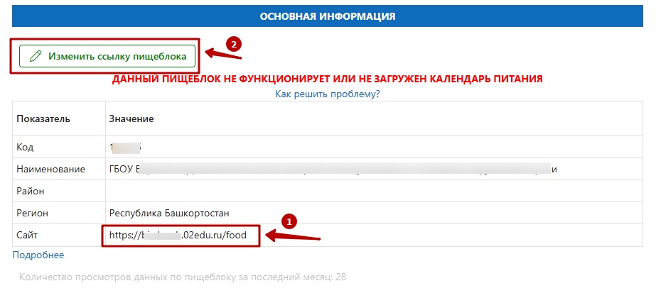 Шаг 4. Если ссылка некорректная, отправьте корректную через форму обратной связи, нажав на кнопку "Изменить ссылку пищеблока".