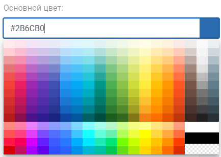 Выбрать нужный цвет из таблицы цветов, либо прописать html-код цвета. Данный цвет также можно установить в параметрах ссылок и иконок на сайте.