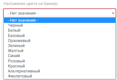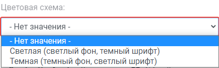 Цветовая схема - текст на баннере будет отображаться белым или черным в зависимости от выбранной темы. Если нужно использовать собственные цвета, цветовую схему выбирать не нужно, в поле оставить "Нет значения".