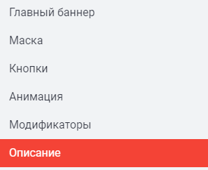 Заголовок - заголовок баннера отобразится на баннере над описанием.