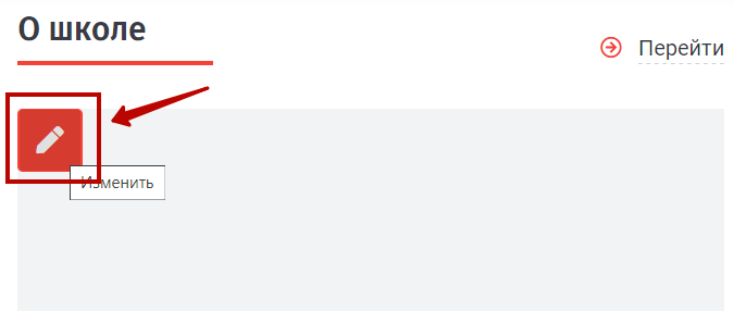 Шаг 2. Навести курсор мыши на область О школе и нажать на карандаш.