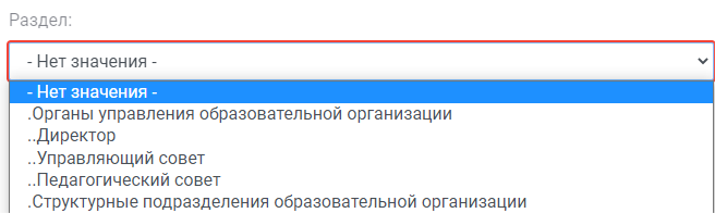 Можно выбрать один из созданных разделов структуры.