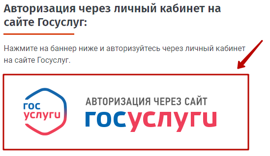 Для авторизации нажимаем на баннер "Авторизация через личный кабинет на сайте Госуслуг":