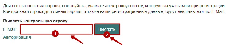 Шаг 2. На открывшейся странице ввести логин или e-mail, который был указан при регистрации. И нажать кнопку Выслать.