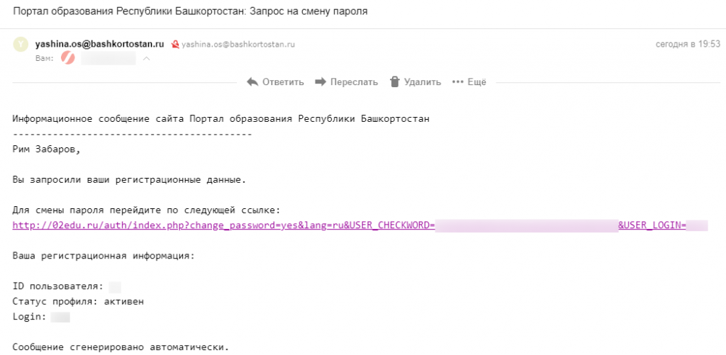 Шаг 3. Переход по ссылке и генерация нового пароля