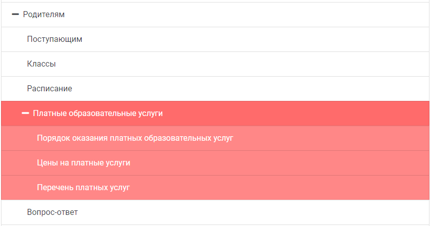 Чтобы скрыть/показать пункт меню, кликните на название раздела.